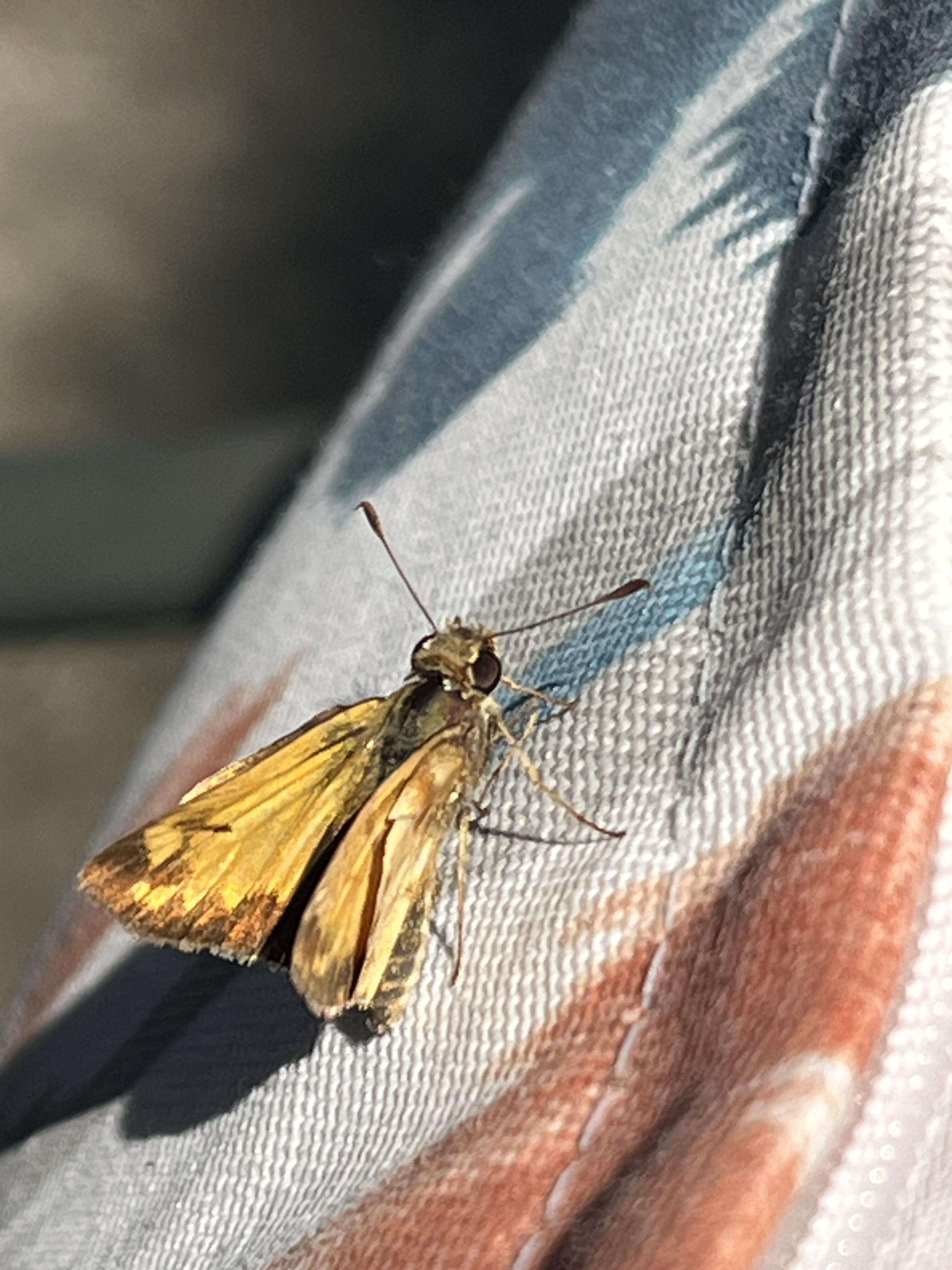 Observation notes: Landed on my patio chair in sun and stayed a long minute while I took pictures. Flittering around our perennial garden