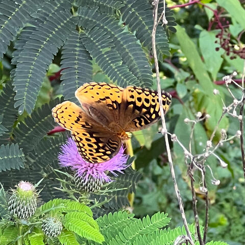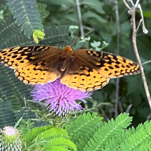 Observation notes: This particular butterfly caught my attention on my property as I noticed it was hanging out on wild thistle.