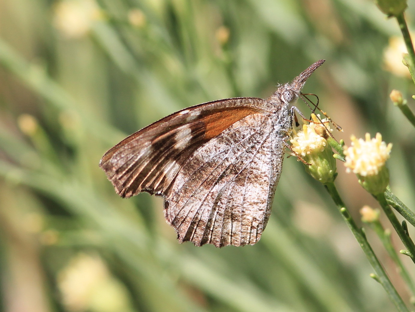 Observation notes: One large Baccharis shrub was flowering and attracting several kinds of butterflies, especially American Snouts, and an assortment of other insects.