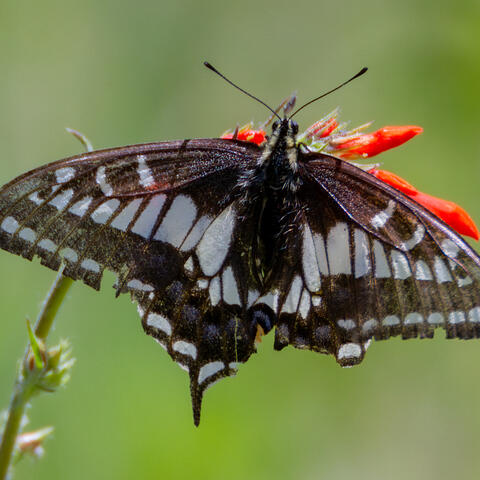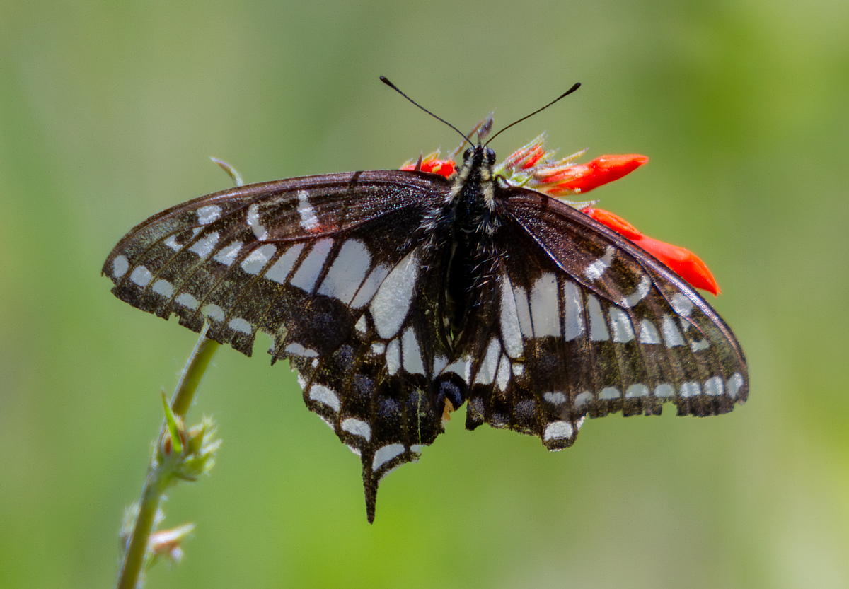 Coordinator notes: This individual is aberrant, in having white instead of yellow markings and pale, subdued black background coloration. Steve Kohler