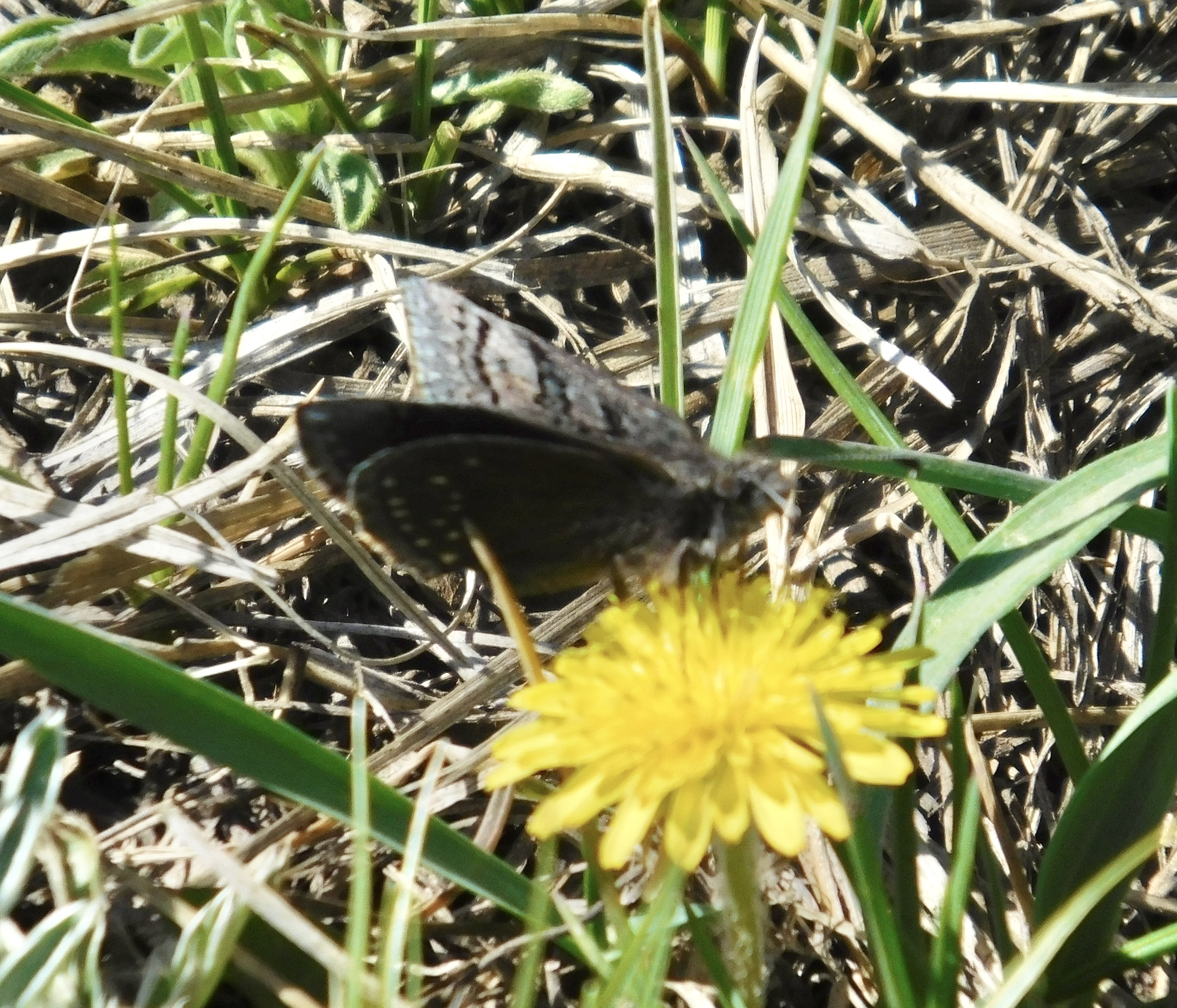 Observation notes: Not a great picture, but at least got a little dorsal AND ventral. I'm going with Sleepy mostly because of timing. Ventral hindwing spots also seem to fit well.