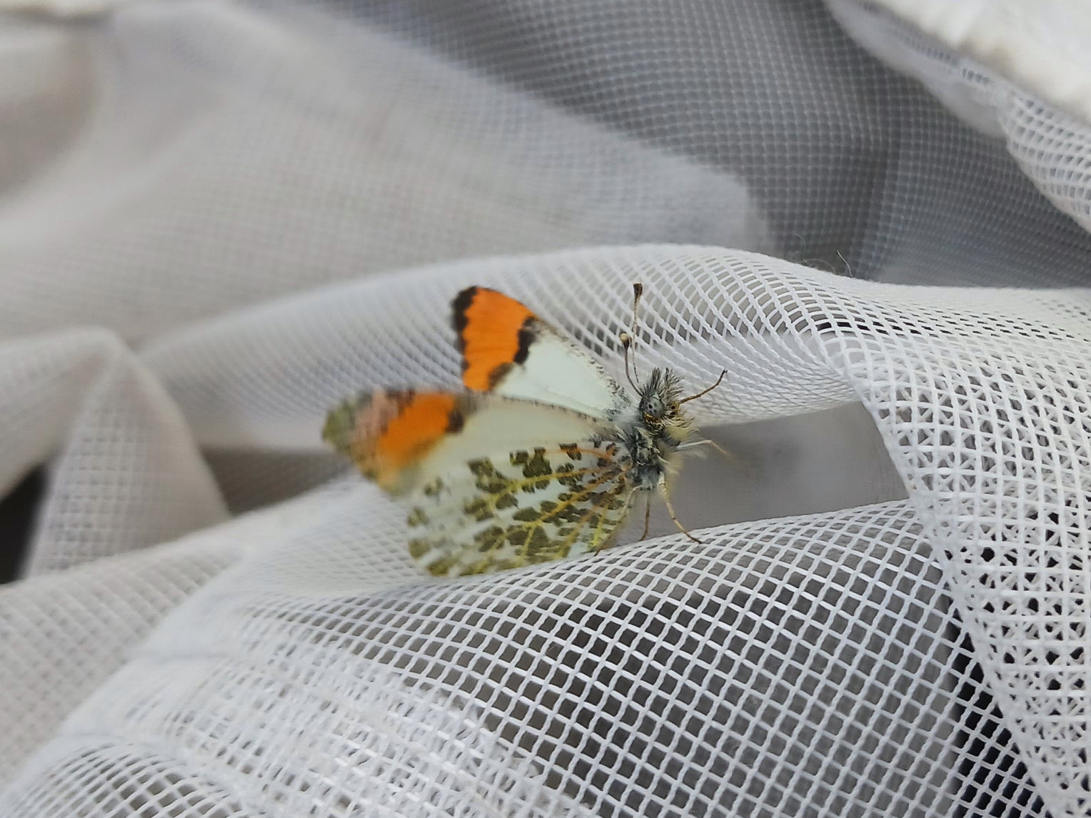 Observation notes: Netted this butterfly right outside my truck then photographed it inside the cab. Released unharmed after a few minutes.