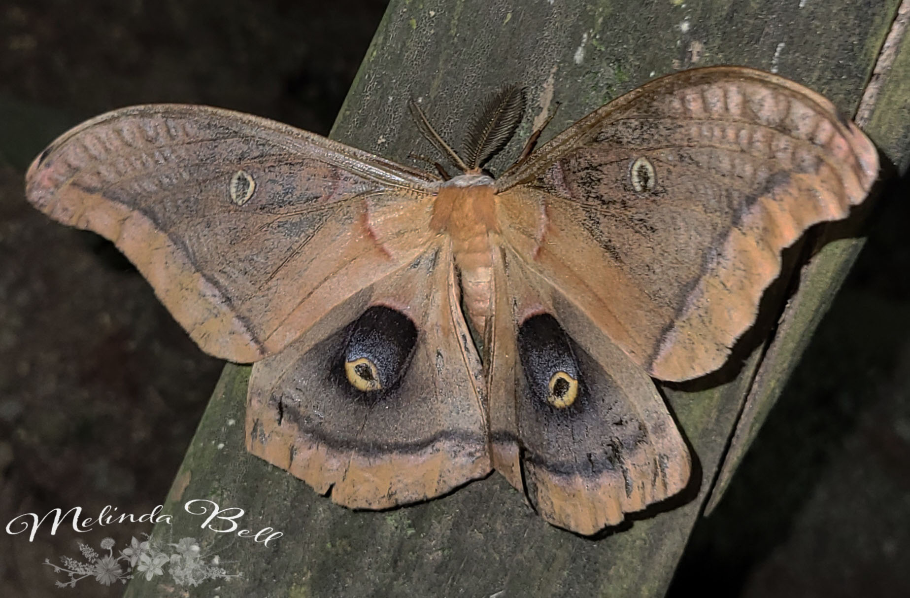 Observation notes: This was a few days before I began National Moth Week. It was an extremely hot week. The Polyphemus moth was found by the lighting station on the leg of a sawhorse. Male.
