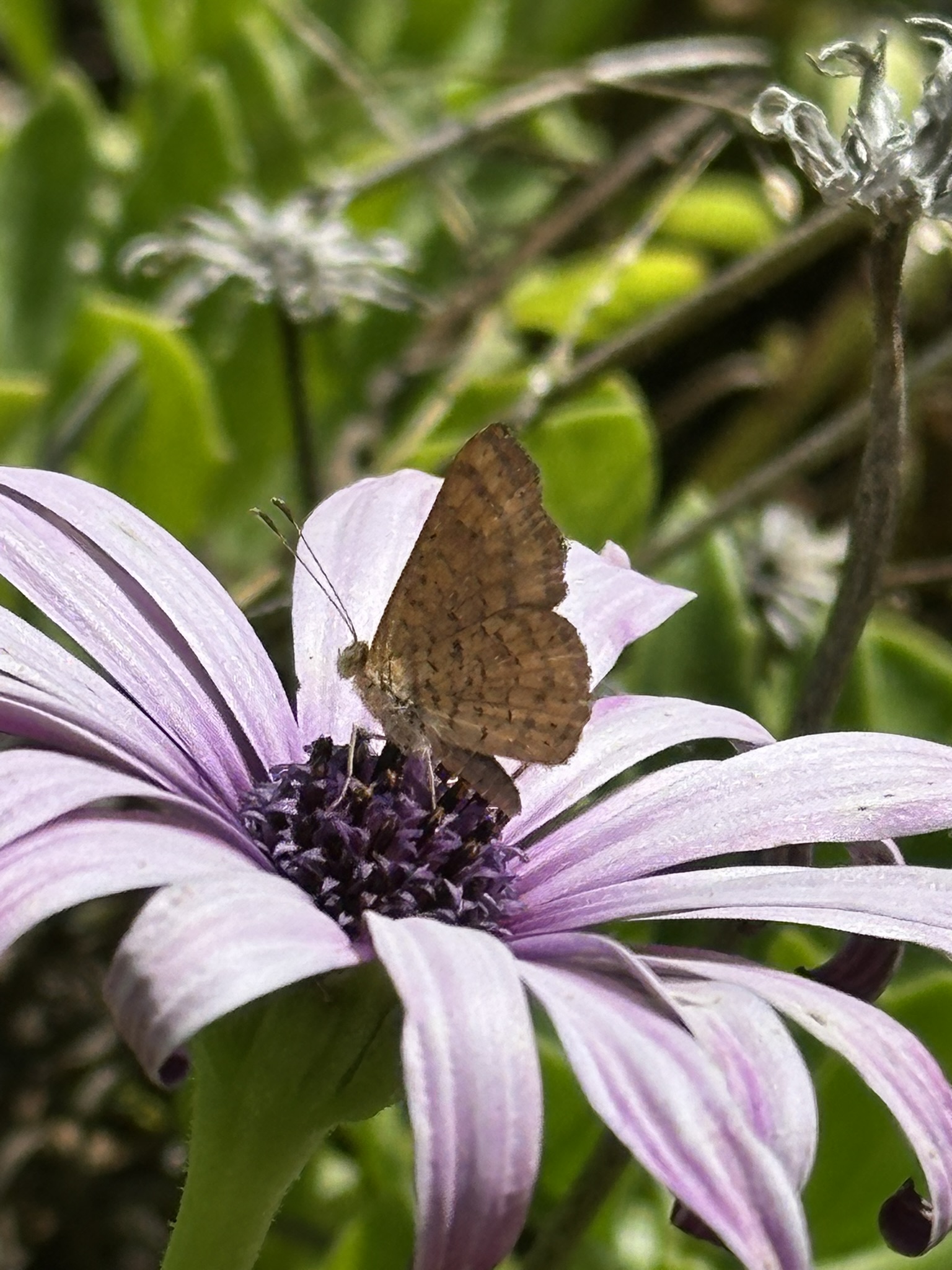 Observation notes: Interesting to find in a suburban backyard on ornamental African Daisies! Partly cloudy day in the 70’s F.