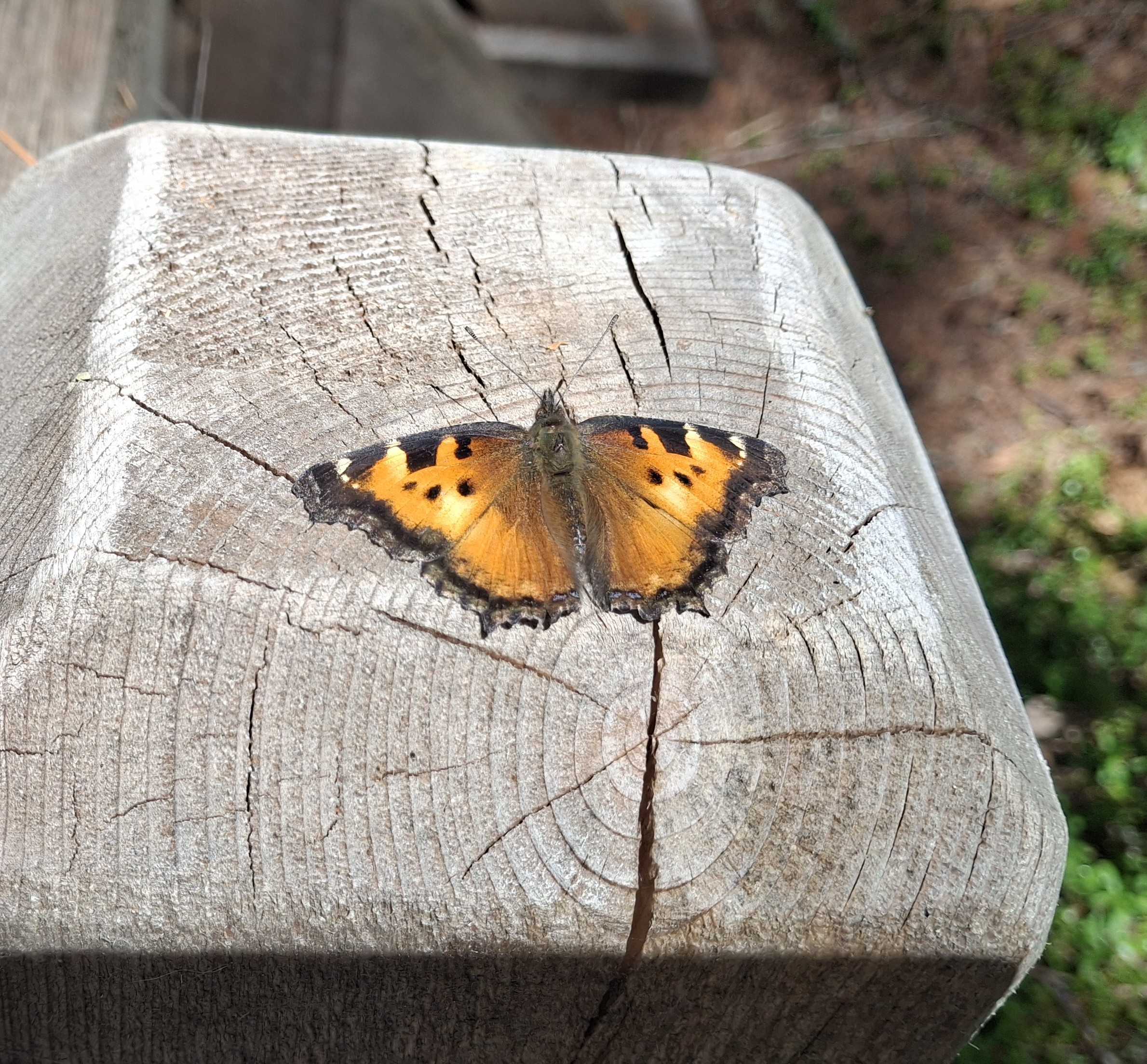 Observation notes: The California Tortoiseshell Butterflies were flying around in the forest at Sahalie Falls. They were everywhere searching for sunlight. Unfortunately many did get hit by vehicles on the nearby Hwy 126.