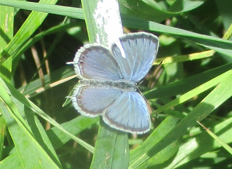 Observation notes: one of two feeding on white clover and resting on blades of grass