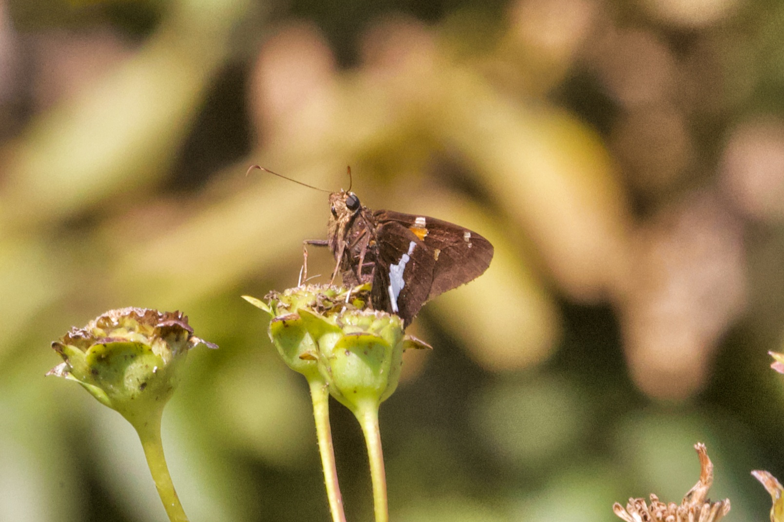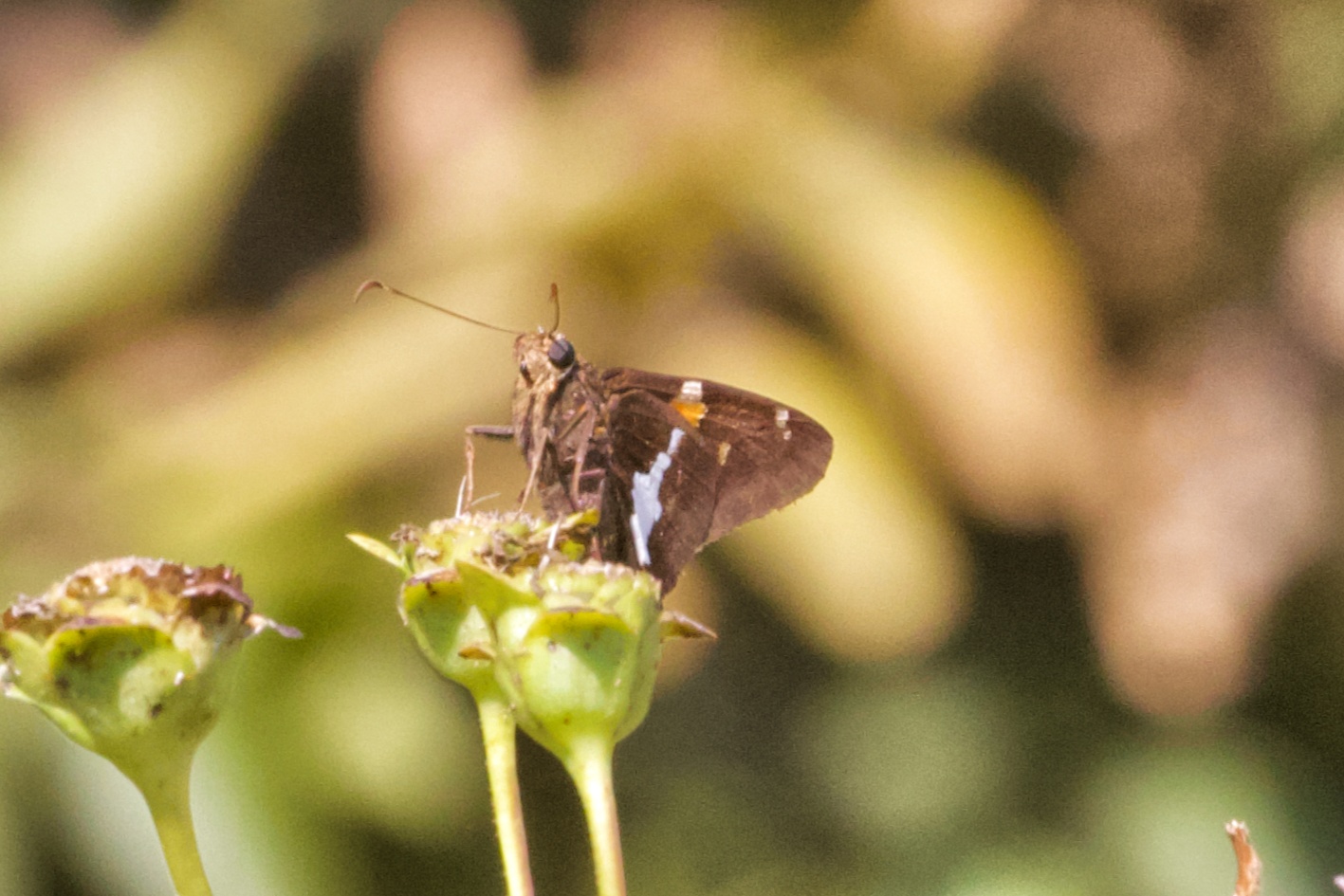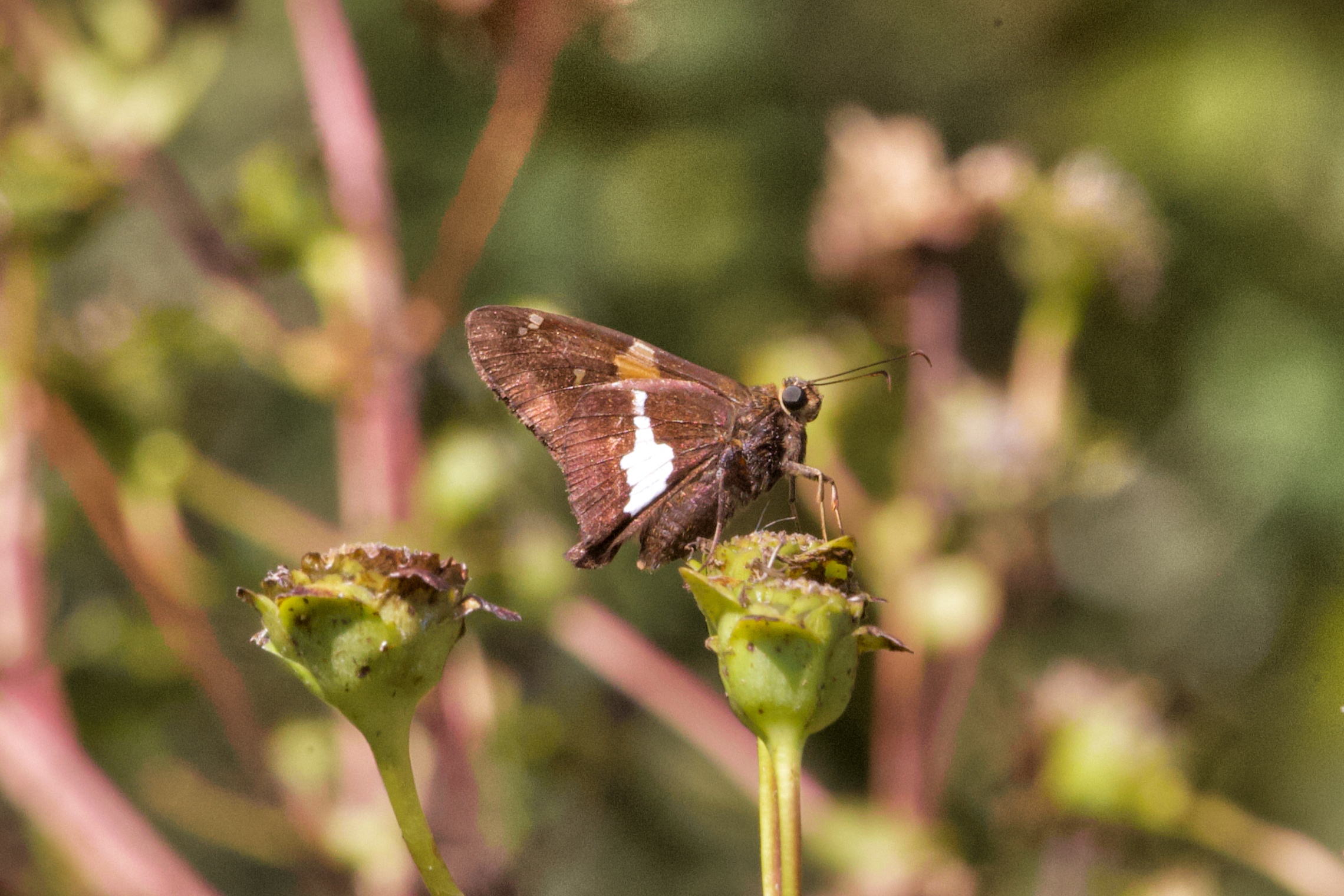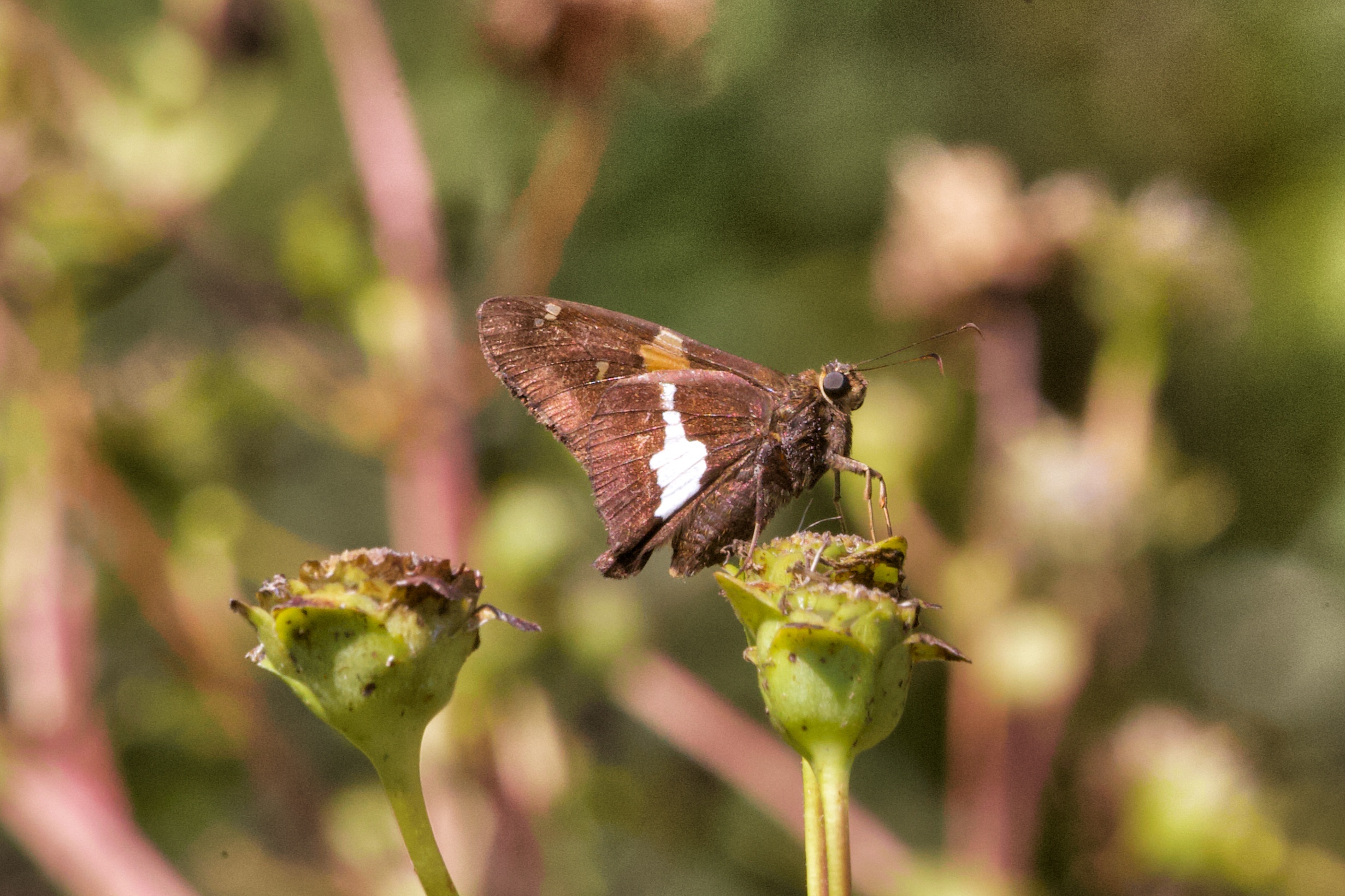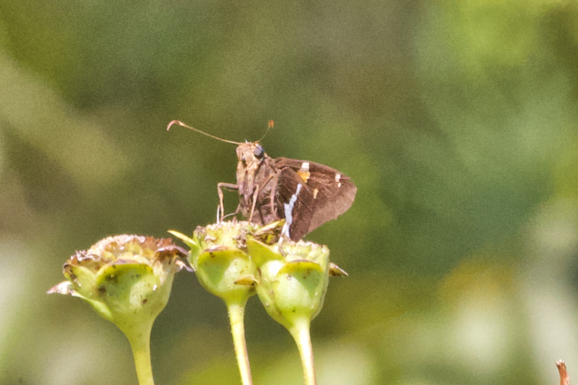 Observation notes: A warm (~82°F) sunny late-summer afternoon; the butterfly was resting atop some spent prairie flowers, moving occasionally from one location to another.