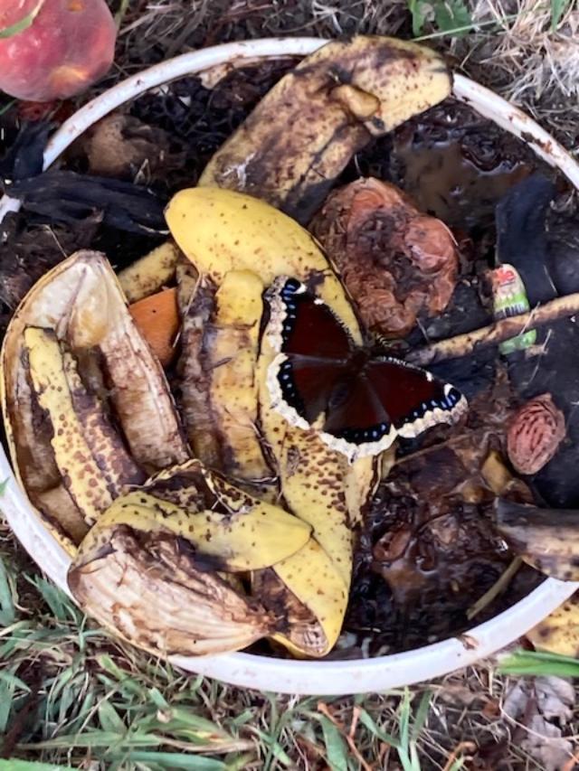 Observation notes: Mourning Cloak eating rotten fruit.