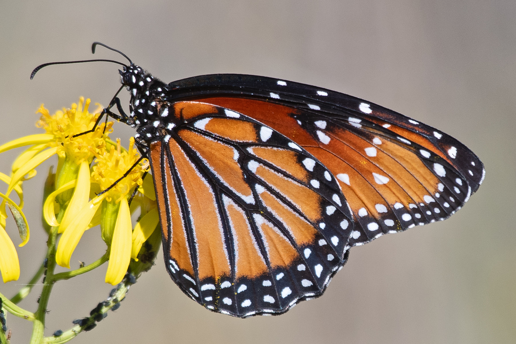 Observation notes: A female (I think). One of at least two queens nectaring on ragwort (Senecio sp.). Sunny, warm, light breeze at most.
