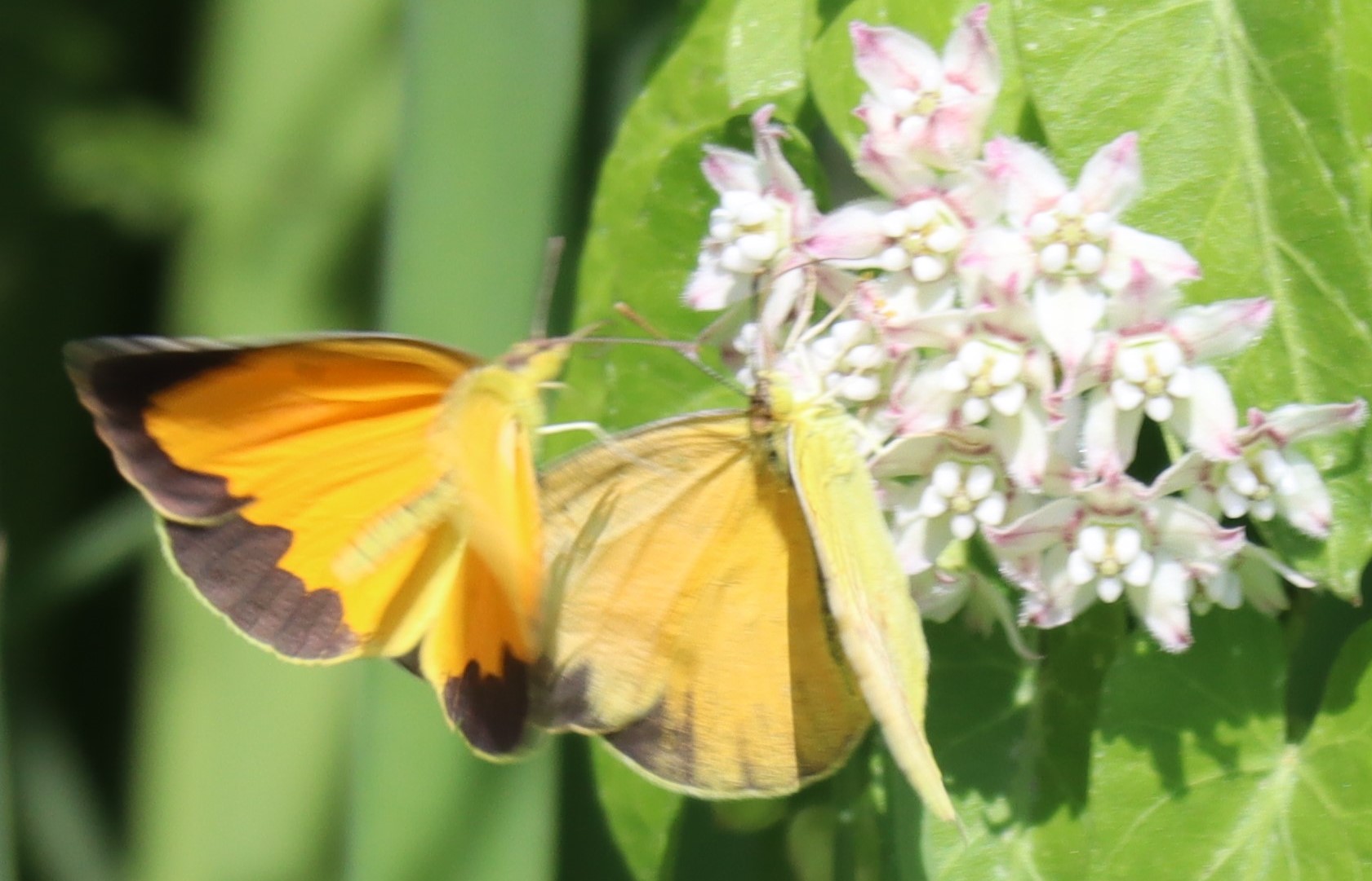 Observation notes: Pair of courting individuals using climbing milkweed flowers and leaves as perches and for a nectar source; located south of La Llorona City Park. The morning was hot, calm, and under full sunshine.