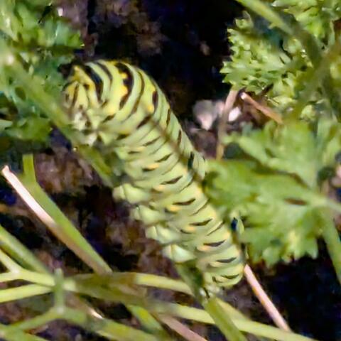 Observation notes: I found eight of them on my parsley plants, two per plant. Six made it to the final instar, one vanished in the early instars, another seemed to stop growing and disappeared.