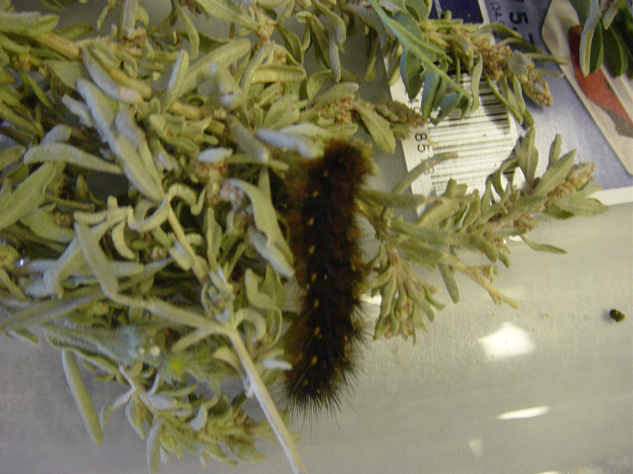 Observation notes: I think it was feeding on a type of sage plant. Is very fast moving and does not like to be disturbed. Tried to run away instead of curling up