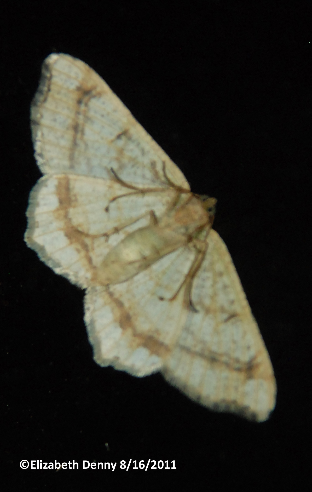 Observation notes: Moth attracted to porch light, around 10 pm. The color is closer to the top photo--the underside photo is through the window, which is slightly tinted.