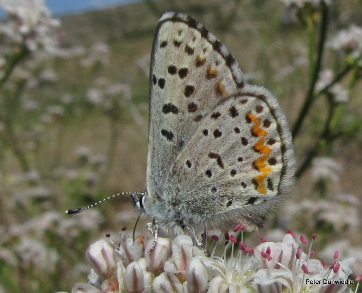 Observation notes: Occasional, sharing Eriogonum elatum flowers with wood nymphs and hairstreaks. Temps in high 80s, elev. 2820'.