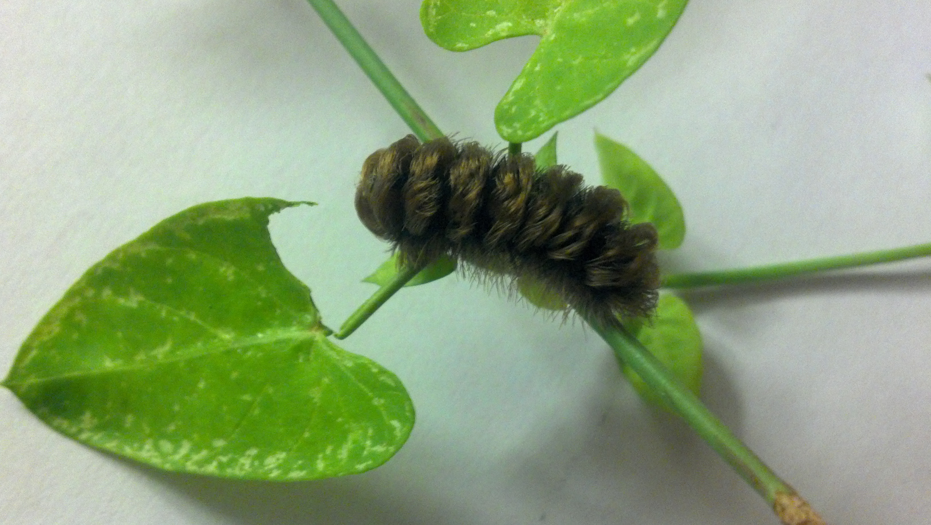 Observation notes: This particular specimen has sections of hair that are neatly curled (they look like mini tupe's). It is brown in color with brownish gray hair. The photograph also shows which plant I have found him on; however, I can not identify the plant either. I found him a day or two after a large storm we had. I live in Tucson, Arizona.