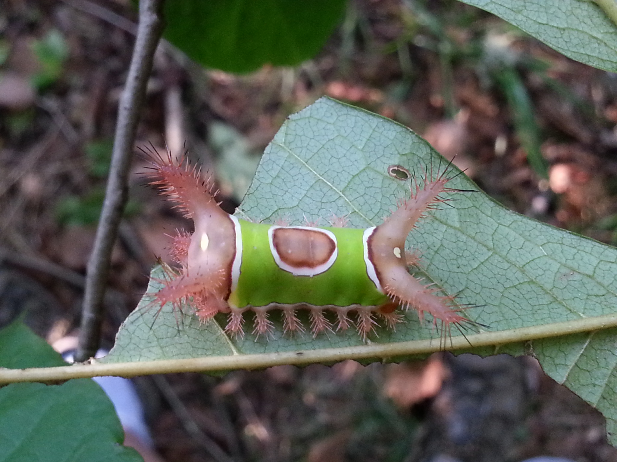 Observation notes: Observed in Troy, MO. Picture taken while feeding on the underside a paw paw leaf. The weather was sunny at 75 degrees F. I found this specimen while passing through a paw paw grove. I only noticed after it "stung" me.