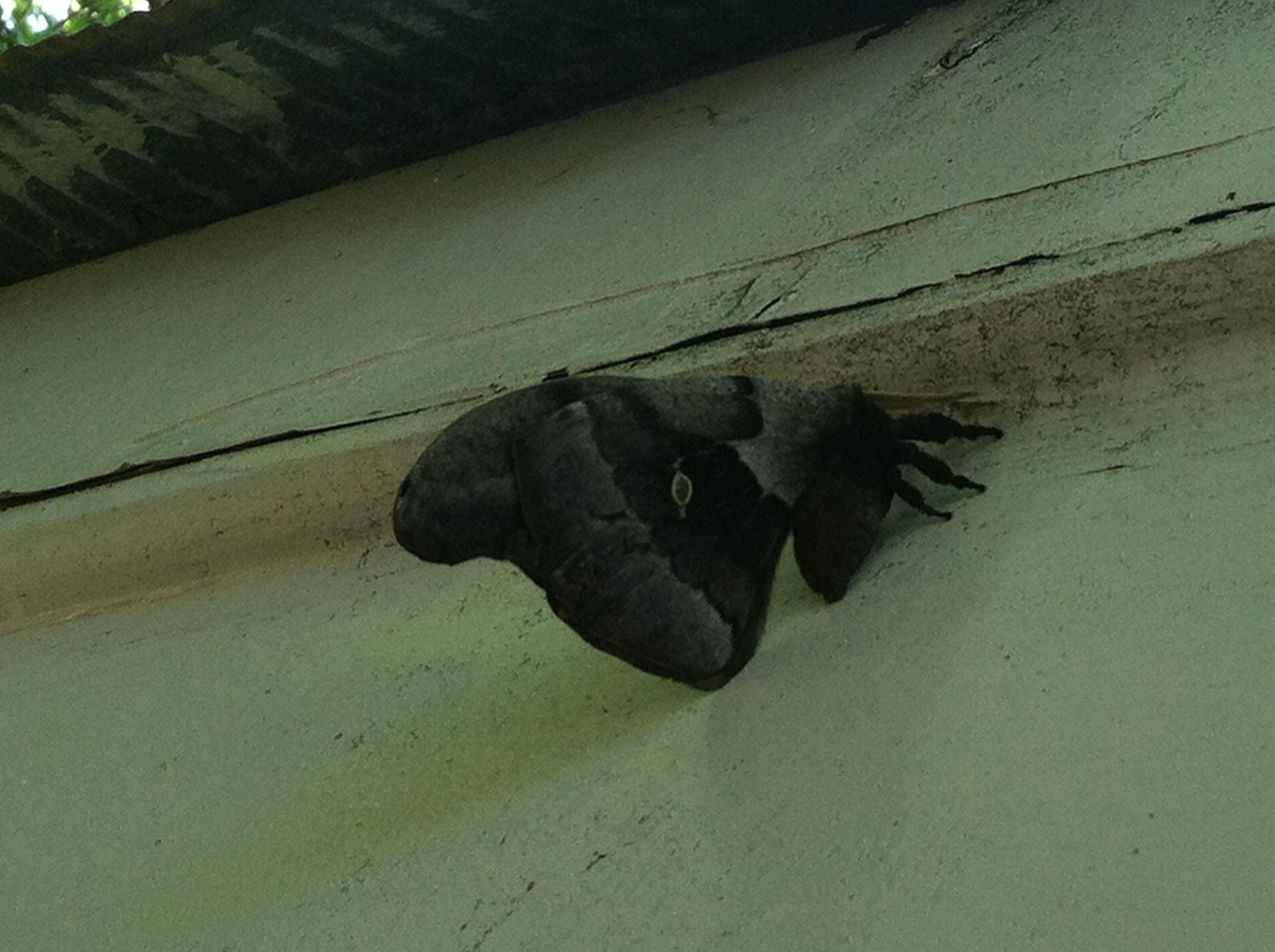 Observation notes: I saw this hanging out ont eh fascia board of my garage. It is shaded by a large tree and it was overcast and about 80 degrees out when the photo was taken. This moth was the first of its type that I had seen.