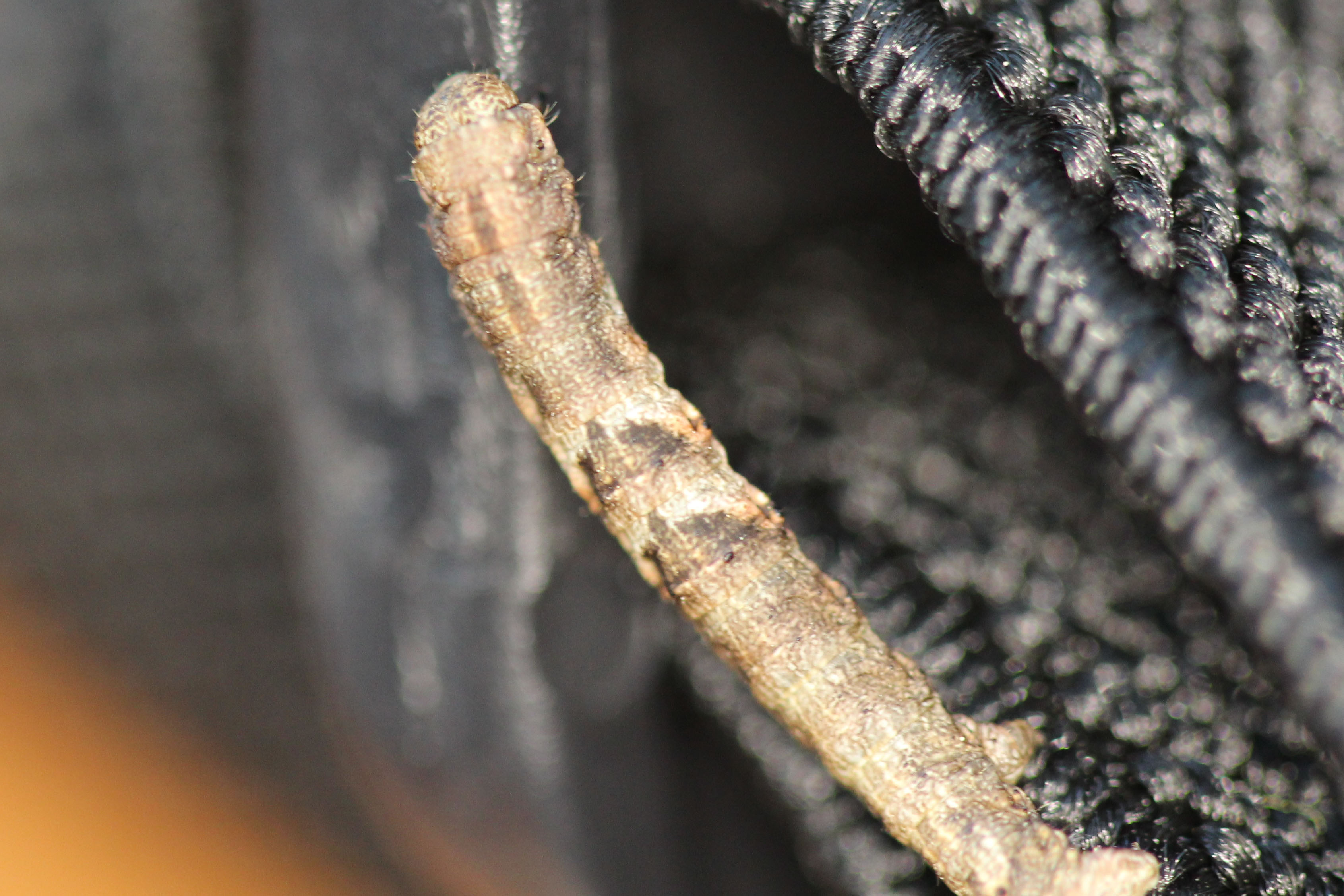 Observation notes: Caterpillar was observed climbing on my binocular case while I was watching birds.