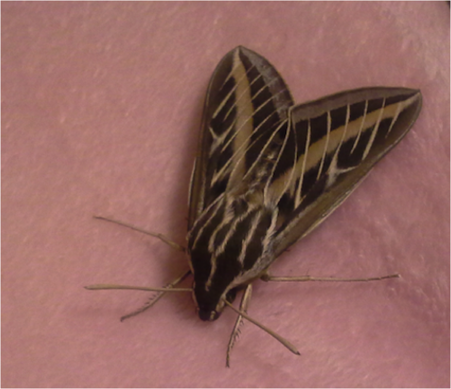 Observation notes: flew in window and landed on baby's change mat. Stripes were one shade darker pink than mat. Release safely after taking several photos