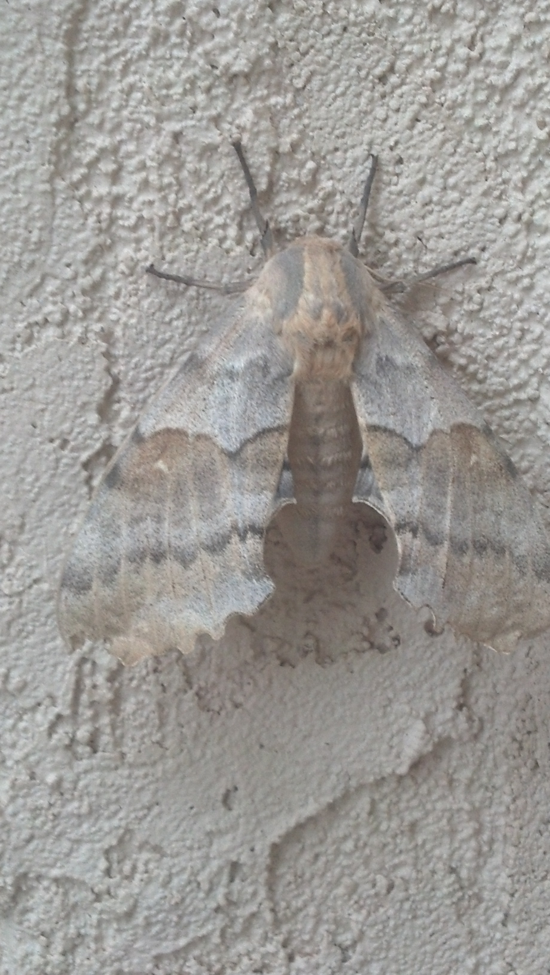 Observation notes: At approximately 1230 pm, the moth was on the stucco wall approximately 2 feet from the ground near front door of house. Moth was not moving when initially found and was still in the same exact position approximately 3 hours later. Weather was overcast, slightly breezy, and temp low 60s.