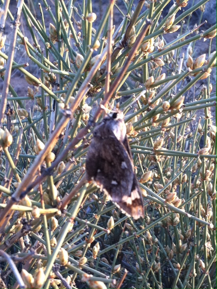 Observation notes: Seen in the evening on a grassy desert hilltop in a small Mormon Tea bush; several host plant yuccas in the area.