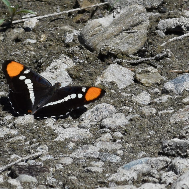 Identification: This is a medium to large sized brown-black colored butterfly with a relatively narrow dorsal forewing postdiscal creamy white colored band above with a relatively large orange patch on the forewing. Superficially similar looking above to Lorquin's Admiral (Limenitis lorquini) but can be readily separated by the lower placement of the orange forewing patch and the blue lines on the ventral surface of the wings. Can be difficult to separate from Bredow's Sister (Adelpha bredowii) which does not occur in the U.S. and the Arizona Sister (Adelpha eulalia) which does occur in the U.S. Ranges of californica and eulalia are not known to overlap in the USA. Generally, this species is smaller than eulalia. It is less violet below. The dark and bluish ventral hindwing postdiscal bands are poorly developed, sinuous. There are two basal orange bars on the HW below while eulalia has only one. The blue bar along outer edge of white HW bar is incomplete while <