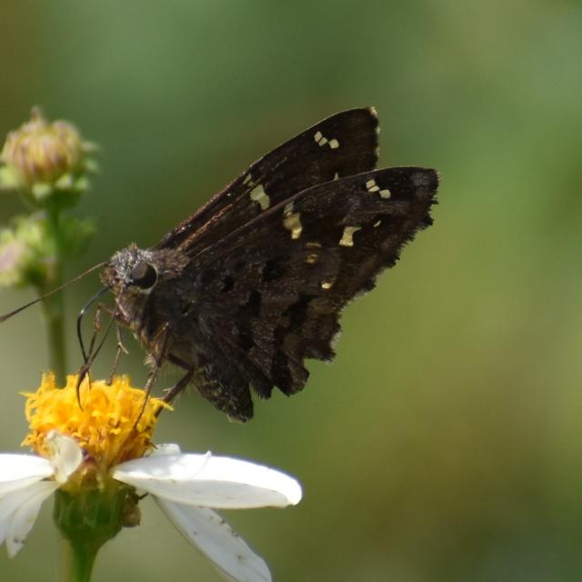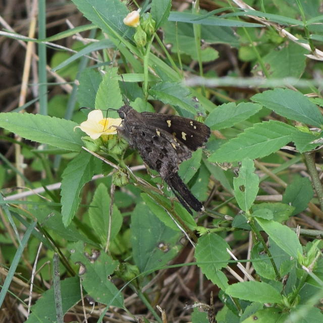 Life History: The Dorantes Longtail Skipper feeds at flowers in the winter, but spends most of the time perching upside down under leaves.